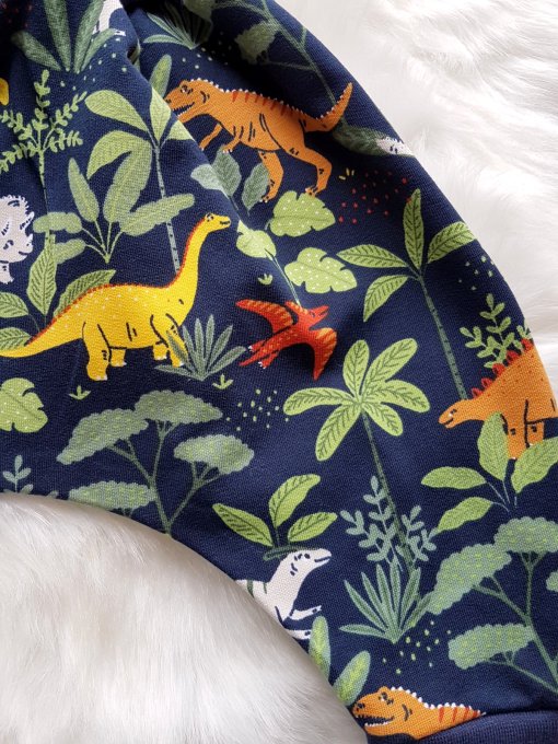 Sarouel évolutif bébé sweat "Dinos colors" motifs dinosaures sur fond bleu foncé - dispo du 3 mois au 3/4 ans