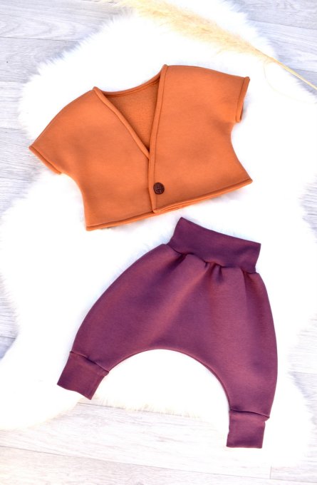 Possibilité de faire cette veste dans tous les tissus sweat de la boutique et de l'assortir au sarouel ou/et aux accessoires (bandeau, bavoir bandana, snood...) pour faire un joli ensemble.